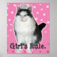 Poster, poder feminino, arte de parede para uma sala de meninas. Gato engraçado vestindo uma princesa cintilante tiara com as palavras "REGRA DA MENINA". Cores na lavanda poster e roxo. Cinzas de cabelos longos e gato branco.
