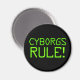 Íman preto com "Regra de Cyborgs!" em letras verdes brilhantes mecânicas.