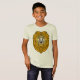 Gráfico do leão com amarelo e o preto, no t-shirt branco do menino.