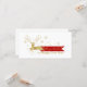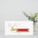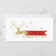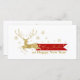 Uma rena de nariz vermelho em um falso efeito de folha de ouro, segue uma faixa vermelha com saudações de Feliz Natal e Feliz ano novo. Os flocos de neve Dourados são salpicados na frente e atrás, onde você pode adicionar uma mensagem pessoal e seu nome. A camada de texto frontal pode ser excluída para deixar a sala de seu próprio texto se uma saudação diferente for preferida. Este design ligeiramente formal funciona bem como um cartão de saudação corporativo para seus clientes.