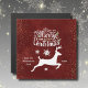 Este cartão de saudação magnético de Natal pode ser personalizado com o seu nome e data profissional ou pessoal. O design de tipografia estilo nórdico mostra um veado e flocos de neve em um fundo vermelho e dourado escondido. A tipografia do texto diz "Feliz Natal".