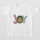 Camisas de Natal, canecas, cartões, autocolantes, sacos para totas, ímãs e outras roupas de Natal e presentes com uma rena e um texto que diz "Alegria".
