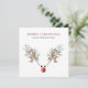 Uma rena vermelha de nariz de Natal fofo com galhos de pínus para galhadas e bagas para olhos e nariz. Perfeito para o feriado.