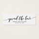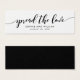 Este mini cartão de na moda com as palavras "espalhar o amor" na escrita negra faz uma etiqueta de favor de casamento excelente para os presentes de favor de casamento. Deixe o lado traseiro preto ou mude-o para branco (clique em personalizar). É fácil personalizar; basta substituir o texto do marcador de posição para adicionar suas próprias informações. Para obter mais opções, como alterar a fonte, o tamanho do texto ou o espaçamento entre letras, clique no botão "Personalizar". *Observe que a Marca d'água do Zazzle que aparece na visualização de zoom NÃO aparecerá no produto impresso final. © Rosewood e Citrus