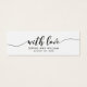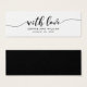 Este mini cartão de na moda com as palavras "com amor" na escrita negra faz uma etiqueta de favor de casamento excelente para os presentes de favor de casamento. Deixe o lado traseiro preto ou mude-o para branco (clique em personalizar). É fácil personalizar; basta substituir o texto do marcador de posição para adicionar suas próprias informações. Para obter mais opções, como alterar a fonte, o tamanho do texto ou o espaçamento entre letras, clique no botão "Personalizar". *Observe que a Marca d'água do Zazzle que aparece na visualização de zoom NÃO aparecerá no produto impresso final. © Rosewood e Citrus