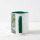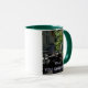 Caneca de café com destaques do verde, com a foto que lembra nos tomar a vida fácil