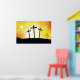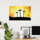 Três cruzes numa colina contra um céu ensolarado. Esta design parece realmente eficaz nestes Poster