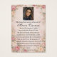 Featuring a beautiful traditional Catholic altar image of Our Lady of Guadalupe by with a floral background design. The back has a beautiful prayer to Our Lady of Guadalupe. All text and fonts may be modified.