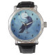 Este belo relógio de corvo tem um rosto grande e uma correia de couro e pode ser vestido por um homem ou por uma mulher. É recomendado para 13 anos ou mais. Projetado pelo artista Terry Webb Harshman.
