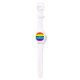 7 Stripes Rainbow Pride Watch. Versão com faixa rosa quente removida devido à indisponibilidade do tecido rosa-quente (1978-79).