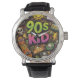 Relógio 90s Kids Grunge Seamless Pattern: Pizza, Skeletons