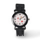 Maçã vermelha com texto em design de padrão de fundo rosa.