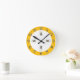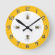Abelhas amarelas e pretas sentadas sobre um pedaço de pente de mel. Imagem definida voltada para a posição 12, 3, 6 e 9. Números 3D num anel amarelo de mel na borda externa.