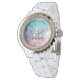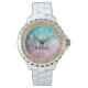 Relógio Abstrato Monograma de galáxia verde-rosa-rosa