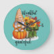 Celebre esta Ação de Graças com o Gnomo bonitinho do Dia de Ação de Graças tendo uma fatia de torta de abóbora, escrito graças e design agradecida.