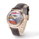 Este relógio de pássaro. É uma bela e elegante peça do tempo com números negros. Com uma bandeira americana azul, branca e vermelha. Com uma águia voando na frente dela. no céu.