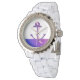 Um design legal para aqueles que amam a água, a navegação ou os temas náuticos. Uma âncora roxa com uma corda e um sotaque roxo sólido na borda deste relógio. Personalizar conforme desejado.
