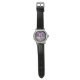 A celestial image featuring an angel with large, multi-colored wings in shades of pink, purple, and blue. The angel, adorned with a wreath, stands gracefully amidst a starry night sky with elements of red flowers and green foliage at the bottom. The artwork is presented on a round, silver-toned item with numerical markings around its edge, highlighting the ethereal scene.