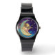 RELÓGIO ÂNGULO DE LUA EM ESPUMA AZUL AMARELA DOURADA