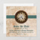 Esse relógio antigo Salve o aviso de data apresenta um relógio vintage centrado de forma destacada na parte superior de uma cadeia de esfera metálica e uma borda elegante listrada em teal. O olhar angustiado do fundo de textura de papel granulado completa a sensação antiquada deste design único. Esta ofensa, exceto o convite de data é perfeito para anunciar seu casamento inspirado em vintage ou steampunk. Fácil de personalizar, basta adicionar os detalhes do casamento nos espaços fornecidos. Clique em "Personalizar" para encontrar opções adicionais para personalizar este design.