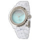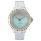 Relógio Aqua Azul Teal Prata Glitter Monograma