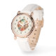 Um relógio com uma bela ilustração pintada. Cactos verdes e montanhas marrons com flores laranja do deserto. Cênico bonito design a sudoeste.