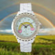 Adicione um toque de espiã ao seu guarda-roupa com o nosso Rinoestone White Enamel Watch. Esse cronômetro encantador apresenta um delicado design do arco-íris no rosto, com corações cor-de-rosa em cada extremidade e pequenas estrelas espalhadas ao seu redor, todas colocadas sobre um fundo azul-claro-sereno. As rochas cintilantes no bezel acrescentam um toque luxuoso, fazer que este relógio seja brincalhão e elegante. Perfeito para qualquer ocasião, esse relógio combina encanto e sofisticação sem esforço. A banda branca de esmalte garante um ajustado confortável, enquanto o design colorido traz uma vibração alegre e elevadora para o seu dia. Que este encantador relógio seja um lembrete para sempre procurar o arco-íris depois da chuva.