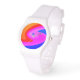 Um novo produto para mim, relógio branco de pulso com cores vibrantes.