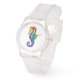 Articulação artificial, brilhante, arco-íris, cavalo de mar poligonal sobre fundo branco. Tatuagem brilhante.
