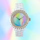 Este belo relógio apresenta uma design iridescente e moderna em cores pastel do arco-íris. Parece que as luzes do norte. Colorida e mágica. Cuidado perfeito para ela, adolescente, garota e um belo presente! Projetado por Marions Trabalho de arte.