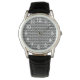 Este relógio masculino tem um design de deco de arte que sobrepõe diamantes em preto num campo de branco.
