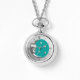 Arte Clássica Lua e estrelas design em prata metálica escovada, com um olhar de esmalte, turquesa/fundo de pavão