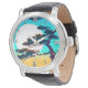 Assista em uma silhueta inspirada em japonês de uma ciprestes, moldando uma lua de cheio contra um aqua e um céu laranja coral