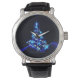 Relógio árvore de Natal estilizada SlipperyJoe azul brilha