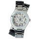 Este relógio feminino tem uma design moderna do século médio de árvores de Natal em diferentes estilos. Uma tem uma grade com retângulos com dentro de esteritivos. Outro tem retângulos arredondados com dentro de retângulos menores. Um terceiro tem linhas curvas com estrelas sobre elas. A árvore final é um triângulo com outros triângulos menores dentro