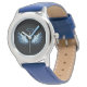 Relógio Asas Anjos Azuis Brilhantes em fundo preto