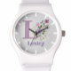 Cuidado com o nome cristão. Design apresenta Monograma & Nome com Flores em ambos os lados no estilo pastel de cor de água. O nome de exemplo é Lesley. Altere o nome conforme desejado para qualquer pessoa com um nome que comece com L.