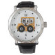 Relógio de pulso do professor de na moda ou motorista de ônibus escolar com gráficos bonitos de joias em um ônibus escolar de bolinhas amarelo e branco, em um fundo branco. Números negros e pontos representam as horas. Personalize para adicionar qualquer texto que você quiser.