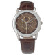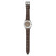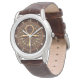 Em um fundo marrom, meio barulhento, este design de relógio mostra um ornamento antigo egípcio decorado com padrões circulares, um grande e um menor, de hastes de ouro, ligados um ao outro. Bem no meio do ornamento, o antigo símbolo egípcio da vida, conhecido como "ANKH". A borda tem um ouro brilhando ao seu redor, assim como a luz, antigos números de horas da Hierarquia Egípcia.
