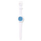 Um relógio branco do pulso esportivo, com um padrão de Bolinhas em azul, aqua e neon verde. Parte da coleção Posh & Painterly 'Blue Moons'; de um design de colagem de papel pintado à mão por Judy Adamson.