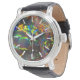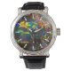 O Opal de Fogo australiano iluminou-se a partir das costas para destacar as vivas cores azul e amarelo-ouro. Esse design apresenta marcas de tick de silva na face do relógio ou encontra o mesmo padrão de faux-opal de glittery com números na coleção.
