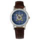 Procurando um relógio que seja tão único quanto sua personalidade? Banquete os olhos neste relógio mesmerizador! Este relógio apresenta uma face azul vibrante adornada com um padrão caleidoscópico intrincado em branco, amarelo e azul, lembrando uma tapeçaria real. Os dígitos estão claramente marcados em branco, fazer fácil de dizer o tempo de um relance. O design não é apenas um banquete para os olhos, mas também um começo de conversa. Quer você esteja em uma reunião de negócios ou um brunch casual, este relógio fará com que todos perguntem, "Onde você conseguiu isso?