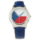 Este relógio da eWatchFactory é o acessório que você queria! Curta o conforto da pulseira de couro azul e não esqueça de personalizar o seu novo relógio com uma imagem, design ou texto.