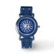 Assistir com a bandeira da cidade de Buffalo, Nova Iorque; bandeira azul com selo branco da cidade e 13 relâmpagos