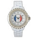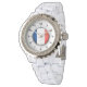 Relógio Bandeira francesa das mulheres Rhinestone White En