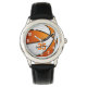 Este relógio personalizado esportivo de basquete apresenta a imagem realista de uma bola de basquete que recolheu painéis brancos e laranja alternados com números superlotados na face do relógio — personalize facilmente o nome do atleta e o número de camisa - de katz_d_zynes