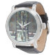 Um design moderno, masculino, com árvores de pássaros vistas por meio de vidro biselado em fundo metálico, listrado de prata. Olho elegante e coloração masculina. Em cores de prata e preto.