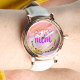 Um elegante relógio de ouro rosa com um belo design abstrato liquefeito, cor-de-rosa. Este relógio bonito vem com uma pulseira branca elegante. O rosto do relógio tem uma mensagem de texto. O texto e as fotos são personalizáveis e podem ser facilmente personalizados para ajustado das suas necessidades. Este relógio único e bonito é o melhor presente para sua esposa, namorada e mãe. presente de excelente para aniversário, casamento, aniversário, feriado, Dia do Namorados, Dia das Mães, e para você! Uma peça de joias verdadeiramente única, que fará qualquer mulher se sentir amada e especial!
