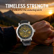 Um bisão se posiciona majestamente em uma paisagem serena e montanhosa, cercada por árvores. O sol de cenário lança um brilho quente sobre a cena, destacando os contornos da terra e o animal majestoso que encarna o espírito da natureza.