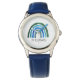 Relógio Boho Cachorro Aquarela Arco-Íris e Nome Azul